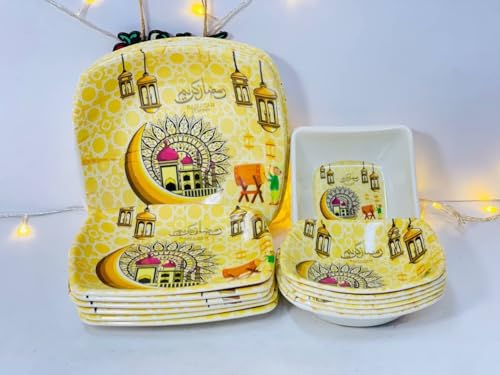 - Set content: includes 24 pcs melamine plates and bowls designed specifically for the celebration of the blessed month of Ramadan