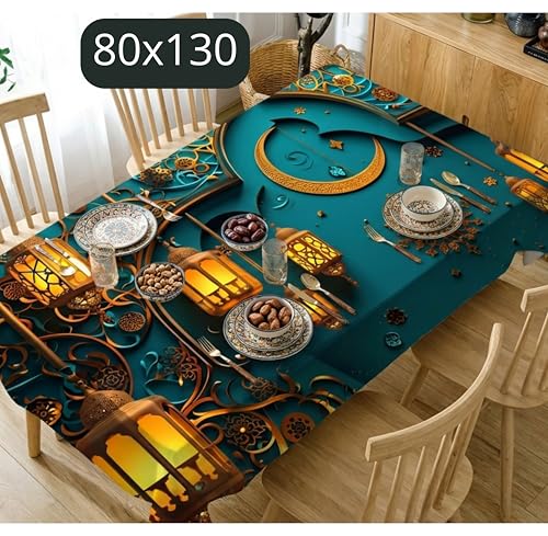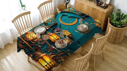 Generic - Ramadan Modern Table Cloth 4D Print - Heavy Tarpaulin Waterproof and Stain Resistant - Golden Crescent Lanterns Design - Size 130 * 80cm - Put the Magic Touch of Ramadan on Your Table