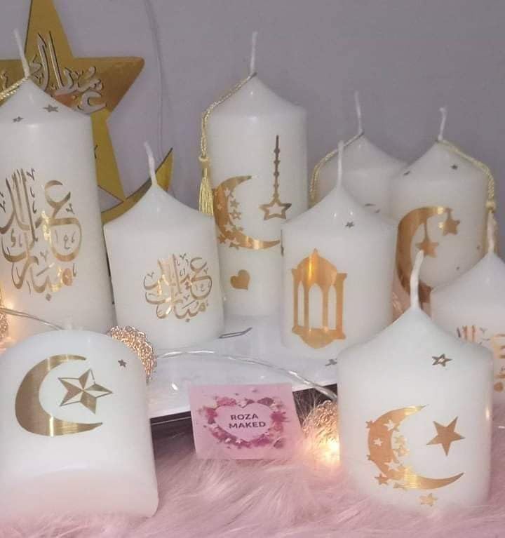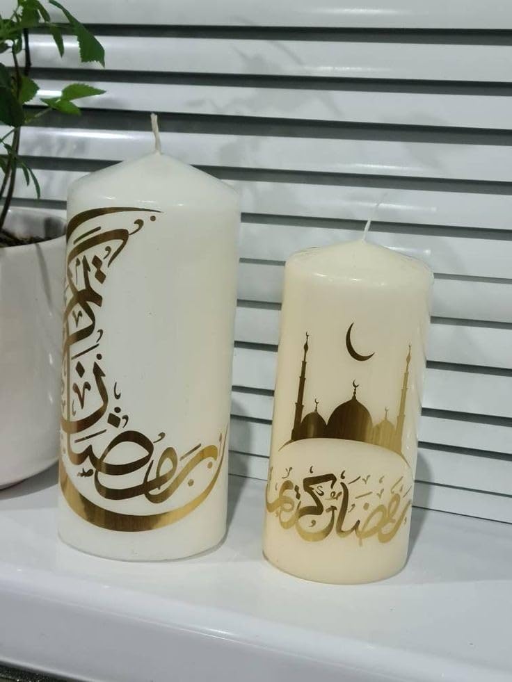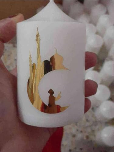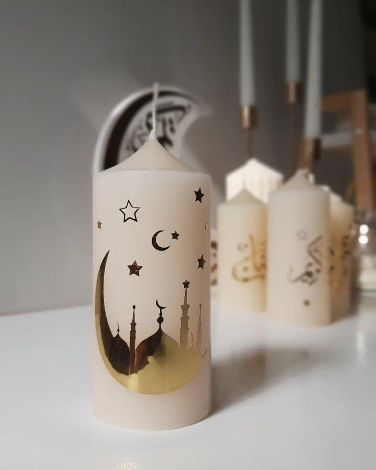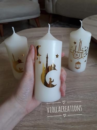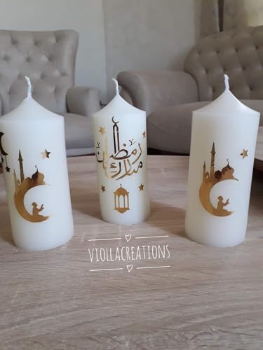 Generic - مجموعة شموع زينة بعبارة رمضان مبارك وزخارف إسلامية ورسوم رمضانية/3 قطع (ذهبي)