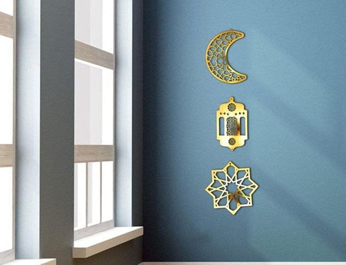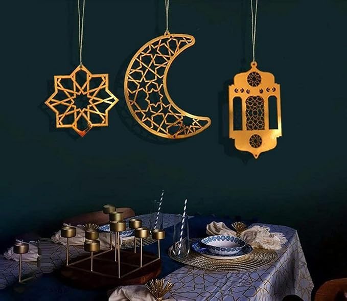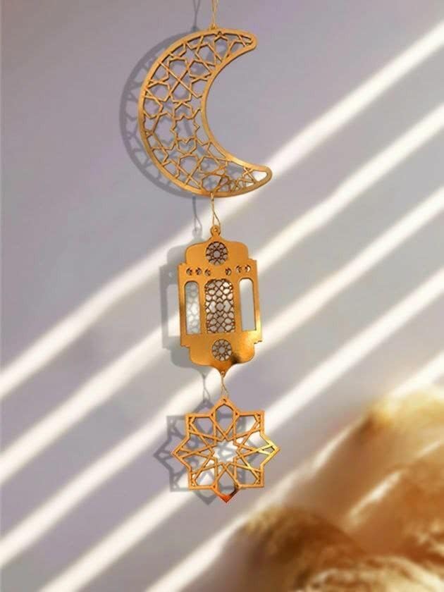 Generic - Ramadan Pendants Multi Shapes Crescent and Lantern - Gold, Synthetic Material, High Khamat