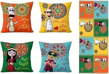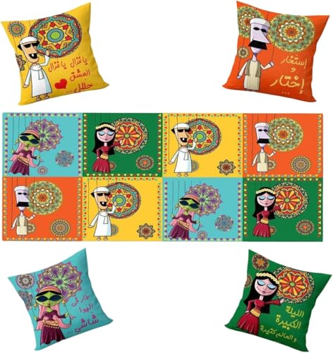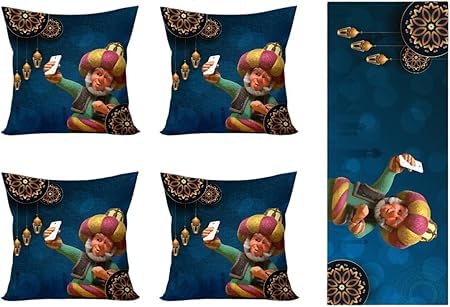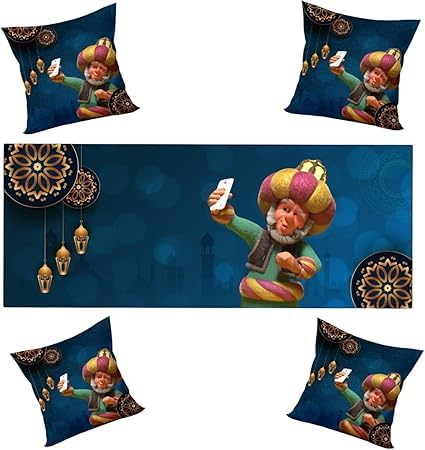 Generic - Ramadan Premium Cushion and Runner Set Includes 4 Cushion 40x40cm and 1 Runner 145x55cm Oriental Designs Inspired by Ramadan Atmosphere Double Face Printing Soft and Easy to Clean Premium Materials