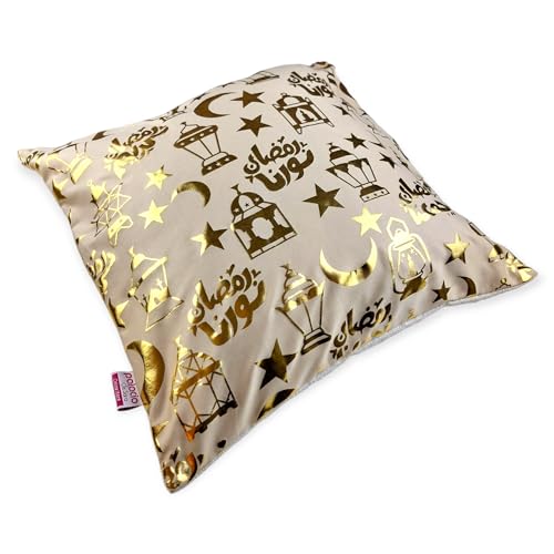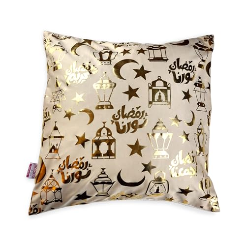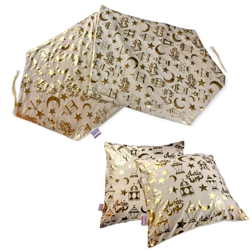 Generic - مفرش طاولة رمضان مع 2 غطاء وسادة رمضان - بيج/ ذهبي
