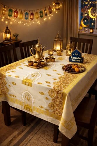 Generic - Ramadan Tablecloth, Islamic Tablecloth, 183 * 137 cm, Waterproof Tarpaulin, Golden Motifs, Mosques and Ramadan Lanterns 2026