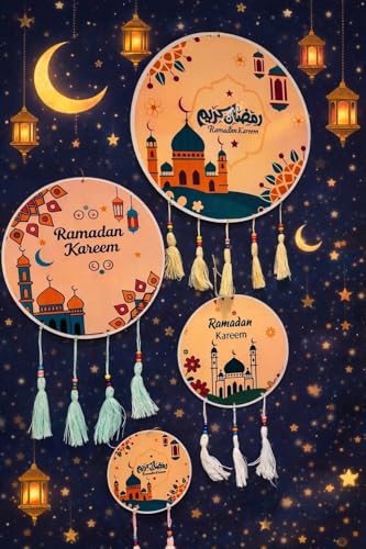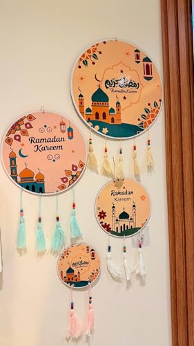 - DESIGN & DECORATION: Each hoop is decorated with mosques, lanterns, crescent and stars with colorful hanging tassels add a great accent