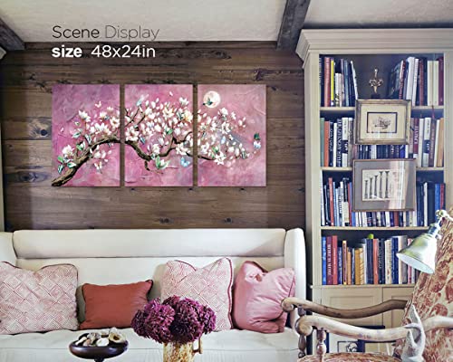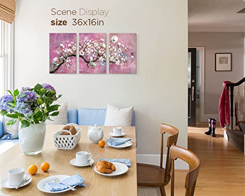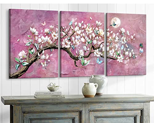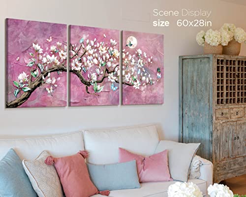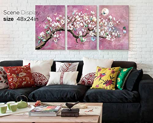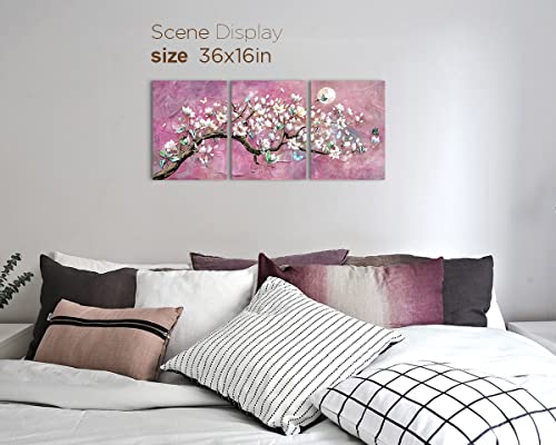 RAMEER - RAMEER Cherry Blossom Wall Art Purple Wall Decor Living Room Art Pink Flower Painting Butterfly Moon Night Pictures Canvas Prints Decor for Bedroom Bathroom Home Office Decor 36x16in