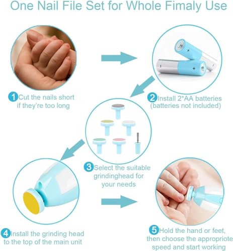 Generic - Rana Store Baby Electric Nail File Extra Safe for Kids, Professional Nail Care System for Nail Art, 6 in 1 Safety Scissors Trimmer Clipper for Toes and Hands, Blue, 1 Piece