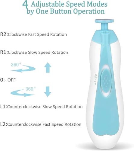 - Multiple settings: different nails can control the speed (high & low) and rotation (cW/CCW) You can use the nail file with just one press. You can choose different modes: high speed or low speed settings. Powered by 2 AA batteries (not included)