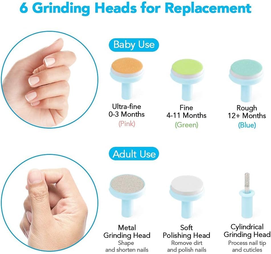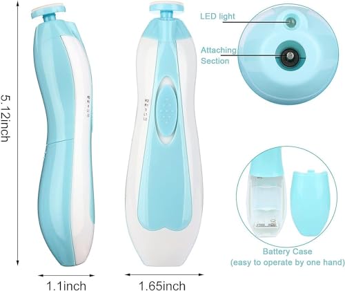 - Silent LED lights: This electric nail file comes with a silent motor, so even if your baby is sleeping, you can trim your nails without waking them up. The nail care set comes with a front LED light (light up when you turn the nail trimmer on), which can be used effectively in dark areas