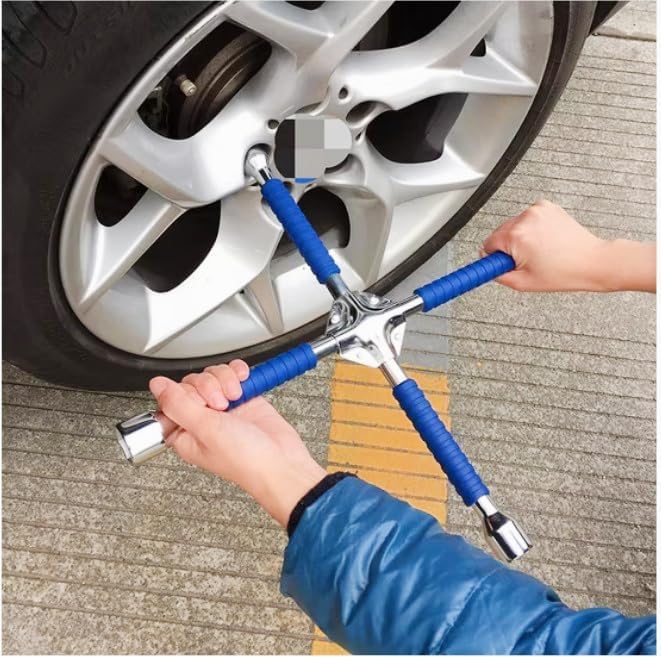 Generic - مفتاح فك وربط مسامير اطارات كاوتش عجل السيارة (فضى معزول ، طول 33 سم ، مقاس 17/19/21/23 مم ، كود : 9537) من رنا ستور