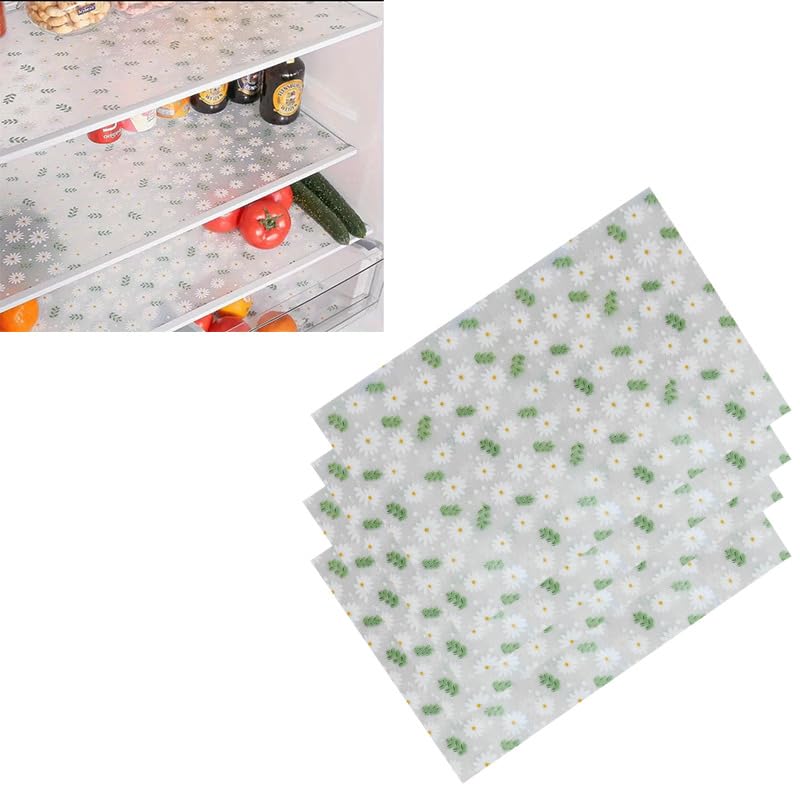 Generic - بطانات الثلاجة ، قابلة للغسل، أغطية مفارش أدوات المطبخ المنزلية، منظم اكسسوارات للفريزر العلوي والرفوف الزجاجية الأرفف السلكية وأدراج الخزانة . ( عدد 4 قطع) من رنا ستور