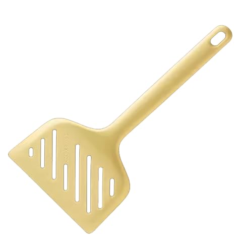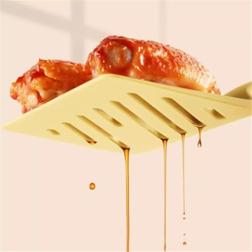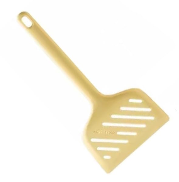 - Made of flexible, non-stick silicone with an angled face that easily slides under food without damaging it. Perfect for use with non-stick pots and pans and will not scratch or cause damage.
