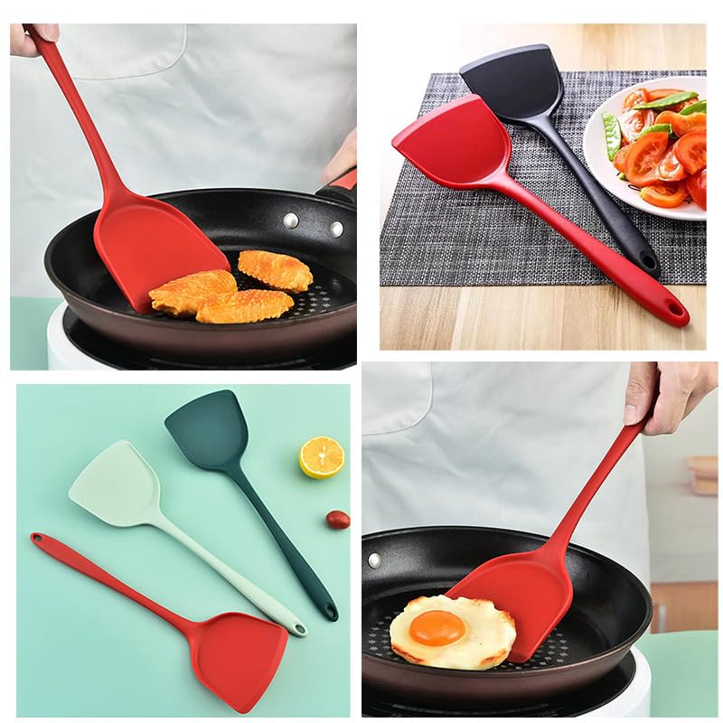 - Made of flexible, non-stick silicone with an angled face that easily slides under food without damaging it. Perfect for use with non-stick pots and pans and will not scratch or cause damage.