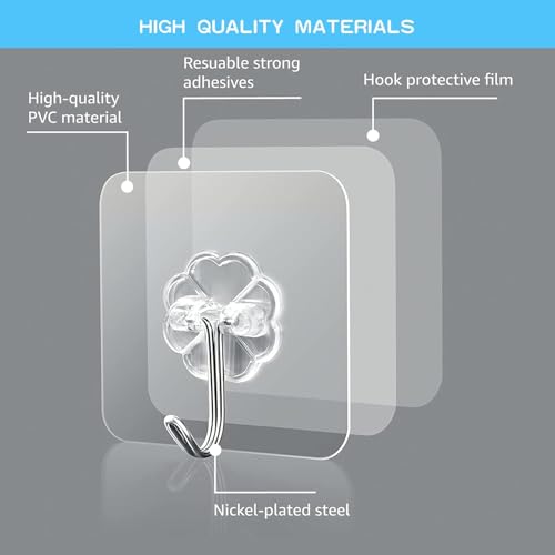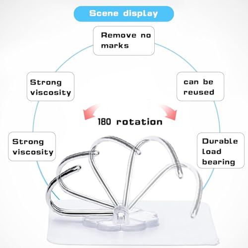 - ✔Size:Set of 10 pcs Long 60mm Wide 60mm Adhesive Hangers that are dampness, grease, and heat resistant.