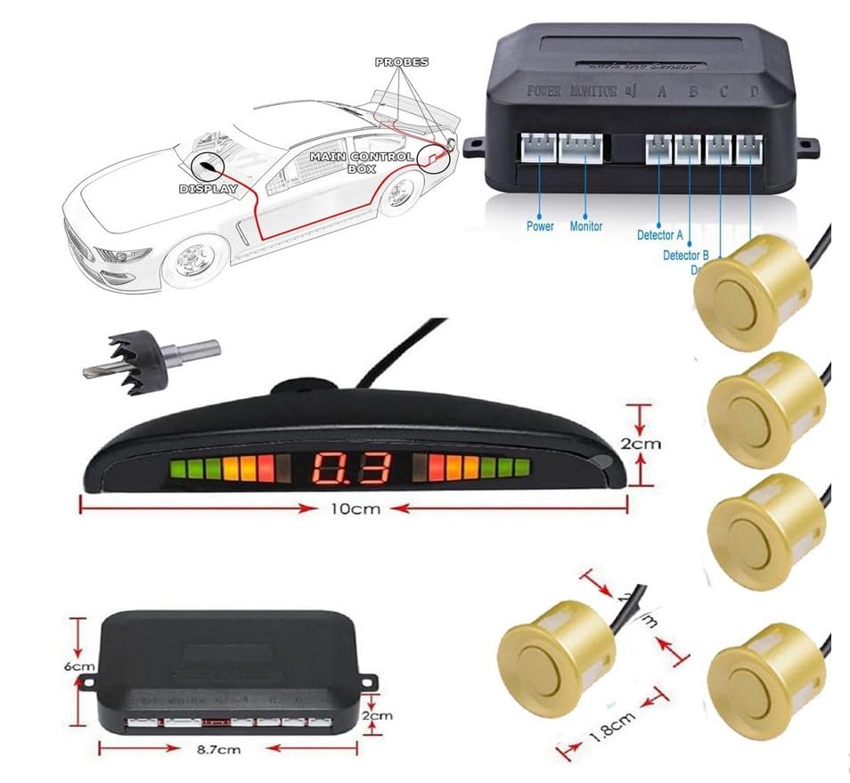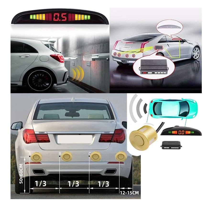 Generic - Rana Store Wireless Parking Sensor, Reverse Sensor with 4 Backup Sensor for Car, Wireless Distance LED Display with Voice Warning -(Golden)