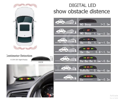 - [ HIGH QUALITY SPARENT CAR SENSOR ] Parking sensor is a simple wireless parking sensor kit. Designed with 4 ultrasonic sensors, a center control box, and a wireless LED display with beep sound to alarm No wire needed between the LED screen and the center control box, and the design is very convenient for you to put the screen on the front of the vehicle.