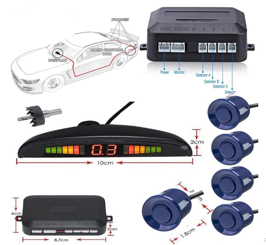 Generic - Rana Store Wireless Parking Sensor, Reverse Sensor with 4 Backup Sensor for Car, Wireless LED Distance Display with Voice Warning - (Blue)