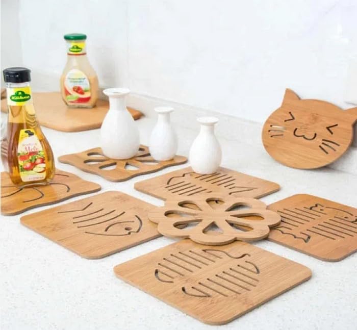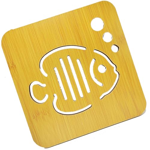 Generic - Rana Store Wooden Coasters Square Coasters Modern and Distinctive Design, with Rubber Base to Protect Table, Heat Resistant, Fish Design - Code 8682-1 Piece