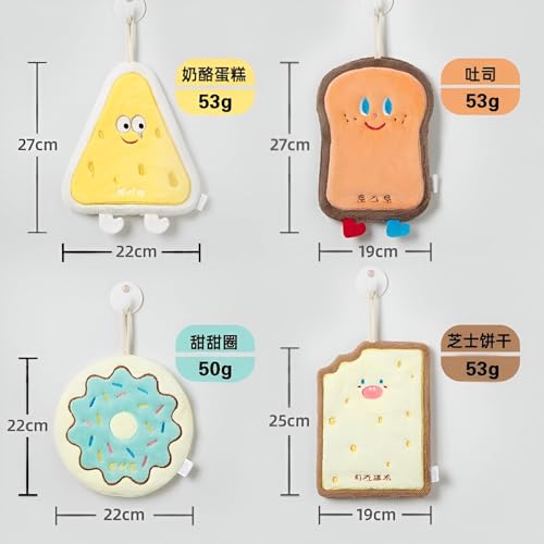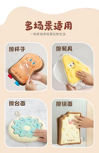 - These delightful towels feature a charming food-themed design resembling cartoon toast, cake, donuts, and cookies, instantly brightening your mood whenever you use one. It's a fun twist that adds a splash of joy to routine tasks like drying your hands.
