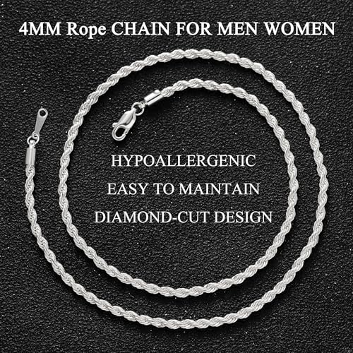 RANKEEF - سلسلة حبل 2/3/4 ملم للرجال من رانكيف، سلسلة فضية 18/20/22 انش مقاومة للماء، قلادة حبل ملتف متينة ولامعة، هدايا للرجال والنساء والزوج والصديق