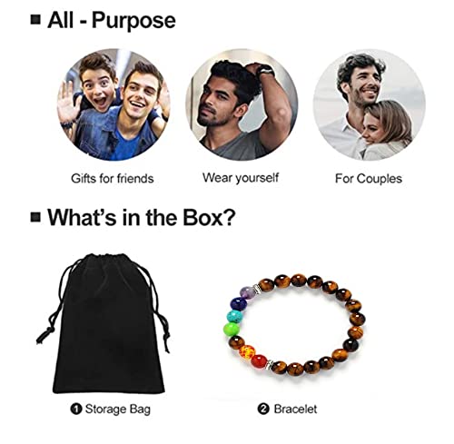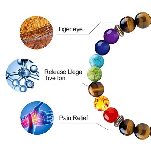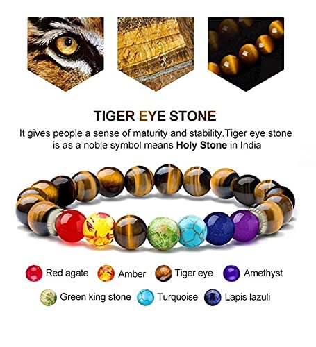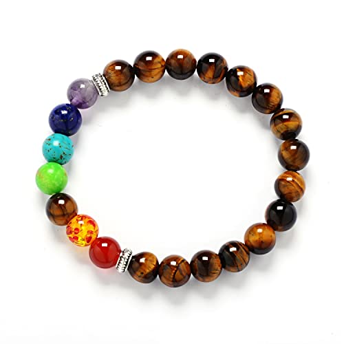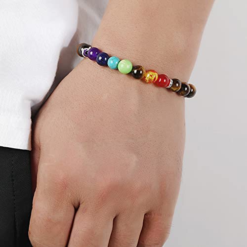 Rankui - 7 Chakras Healing Crystals Bracelet for Women and Men, 8mm