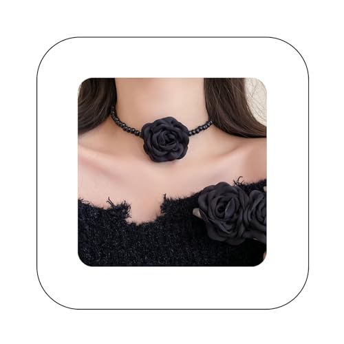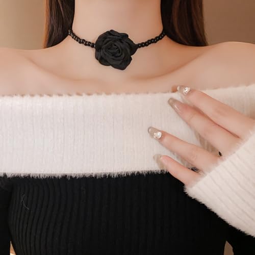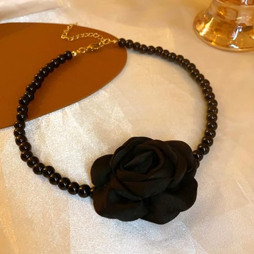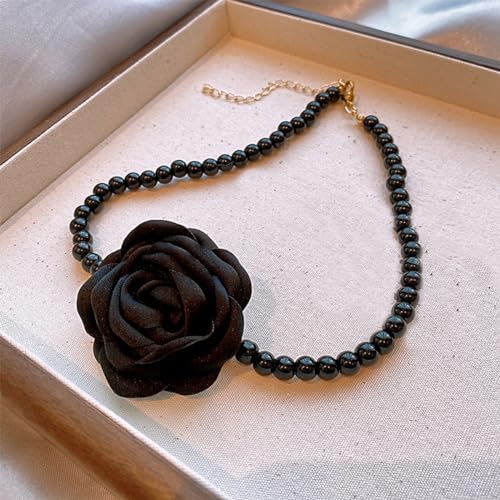 Rannyrena - Vintage Pearl Choker Necklace with Flower Dainty Handmade Floral Collar Necklace Imitation Elegant Pearl Jewelry Bridal Wedding Accessory for Women (Black)