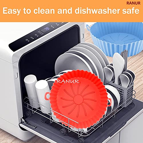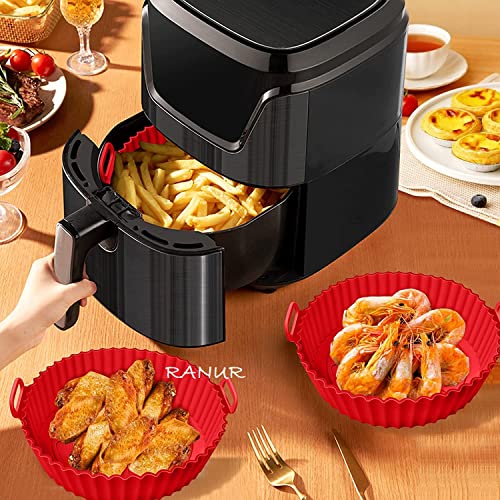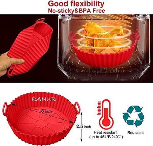 RANUR - حلة سيليكون قابلة لإعادة الاستخدام والغسل مع مقابض جانبية سهلة التنظيف مع قاعدة 16.5 سم وصينية خبز وسلة مقاومة للحرارة العالية للقلاية الهوائية من رانور، قطعة واحدة (أحمر)