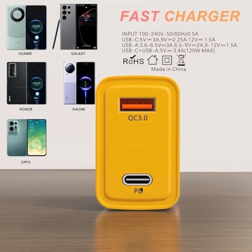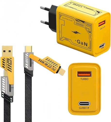 Generic - Rapid Power Adapter with 1.2M 4-in-1 Charging Cable – USB-A & Type-C Inputs to Type-C & Light ing Charging Port – High-Speed Turbo Charge 119W – Yellow Black