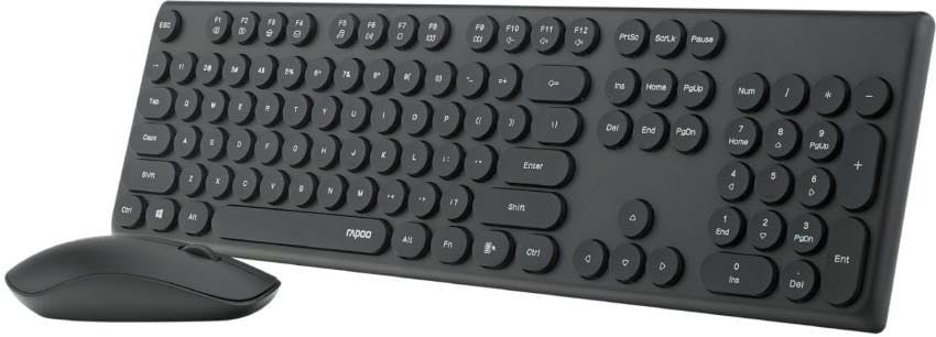 RAPOO - ماوس ولوحة مفاتيح ضوئية لاسلكية X260S - اتصال 2.4 جيجا، نطاق 10 م، مقاوم للانسكاب، غطاء مفاتيح دائري بنمط رترو 1000 نقطة لكل بوصة - أسود
