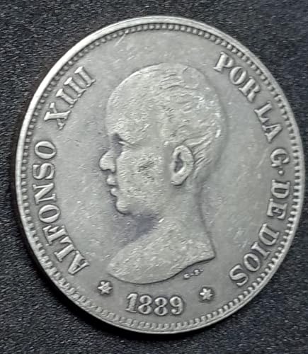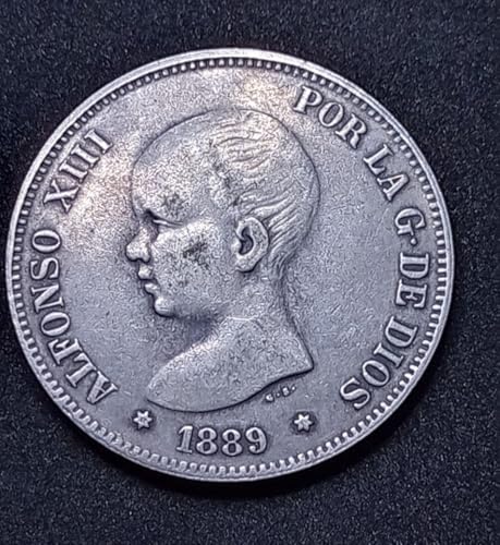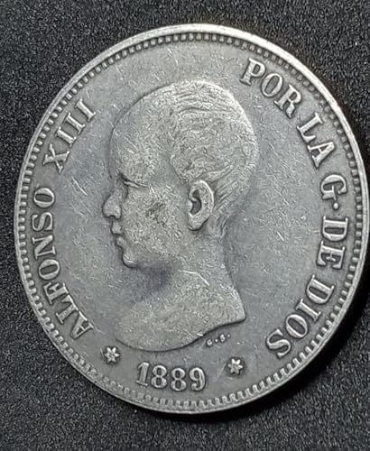 Generic - Rare Old Coin 5 Pesetta of Spain King Alfonso XIII 1889 - A rare ancient coin of 5 pesetas of Spain King Alfonso XIII, 1889