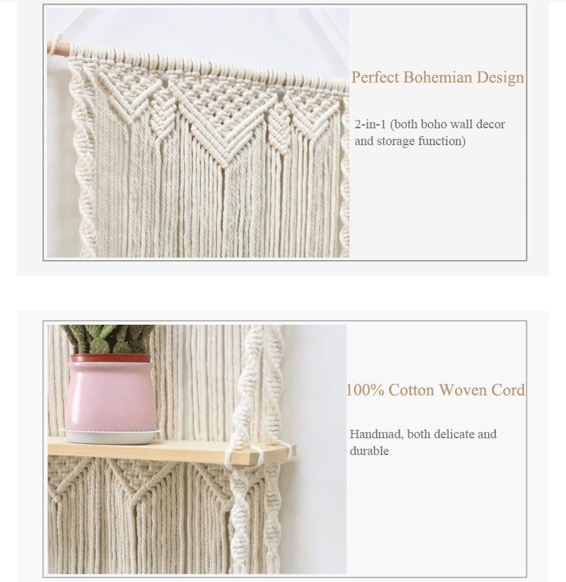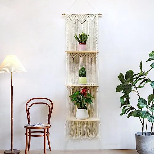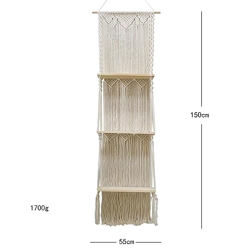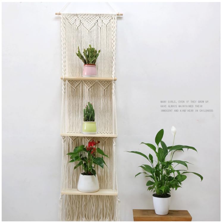 RARLON - Macrame Wall Hanging Shelf-3 Tier Large, Boho Floating Shelves Handmade Decorative Organizer Hanger for Kitchen, Plant Book Storage Shelving, Home Storage, Living Room Wall Décor
