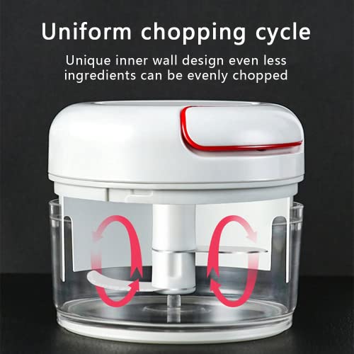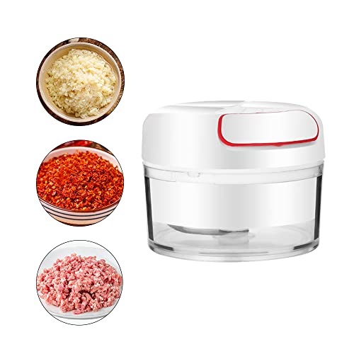 - 【Time-Saving & Multi-Functional】This speedy manual food chopper will help you cut garlic, carrots, vegetables and nuts. It only takes a few times to pull the ring to chop the ingredients. Even the onion will not make your eyes watery. The garlic chopper will save much time in the kitchen.