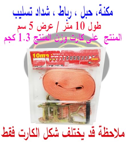 Generic - Ratchet Tie Down Straps, Tie Down Straps & Lifting Ropes with Heavy Duty Hooks for Secure Load, Adjustable Buckle Closure (Card Slider, 10 Meter Length, 5cm Wide) - by KaberTrade
