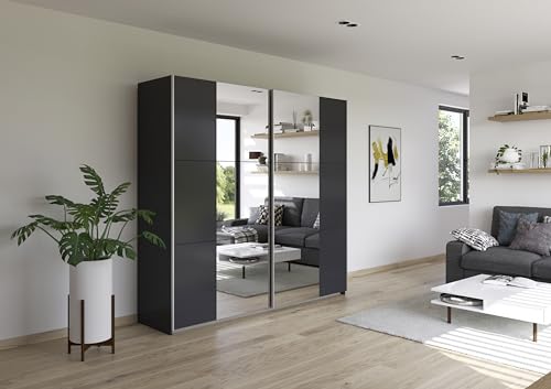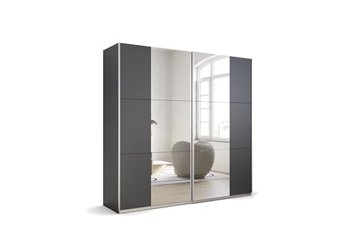 - Modern wardrobe with sliding doors 2 doors with mirror and body and fronts in grey metallic replica
