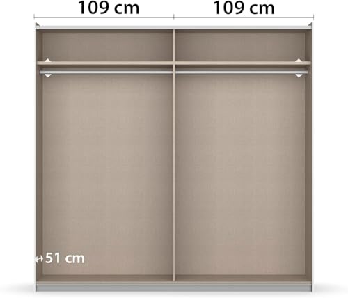 - Wardrobe interior layout 2 elements 109 x 109 cm wide, dimensions (W x H x D): 218 x 210 x 59 cm