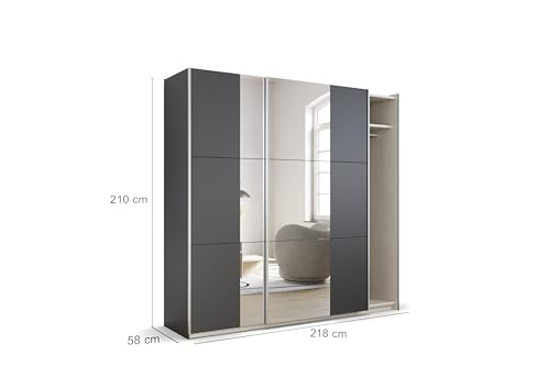 - Cupboard handles in aluminium colour, the wardrobe offers plenty of storage space thanks to its height of 210 cm