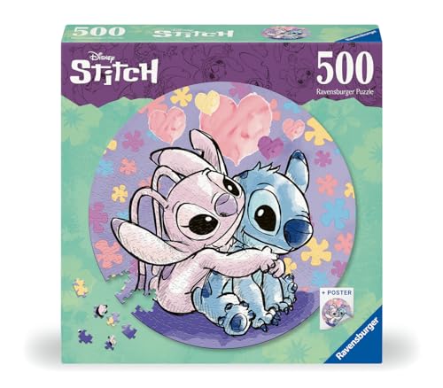Ravensburger - Ravensburger - Circular Stitch Puzzle, Puzzle 500 Pieces, Puzzle Adults and Puzzle Children +12 Years, Puzzle Disney, Puzzle, Stitch Gifts, Use Glue Puzzle to Frame Puzzles, 52 x 52 cm