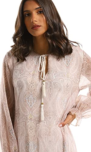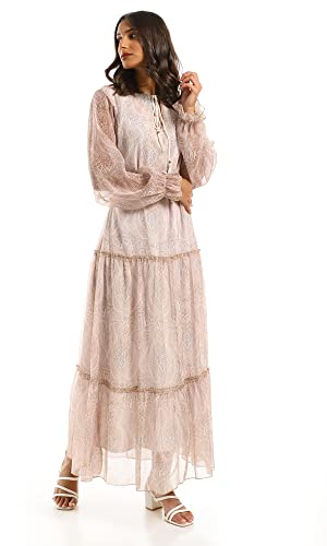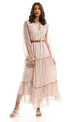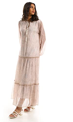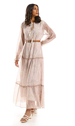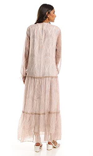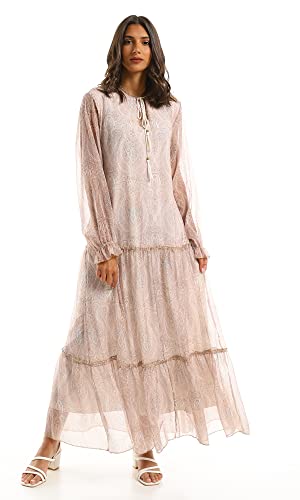 Ravin - Ravin 97711 Beige Modest Tiered Maxi Dress, Beige, L