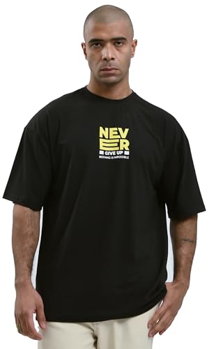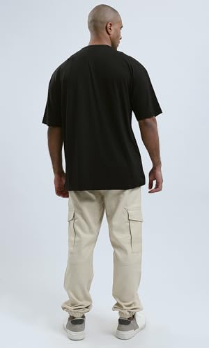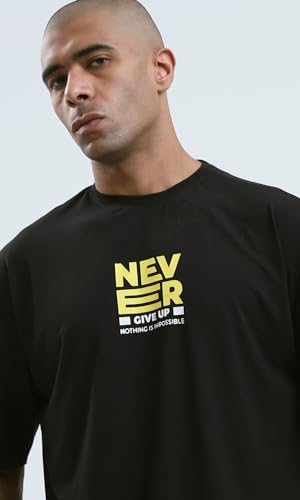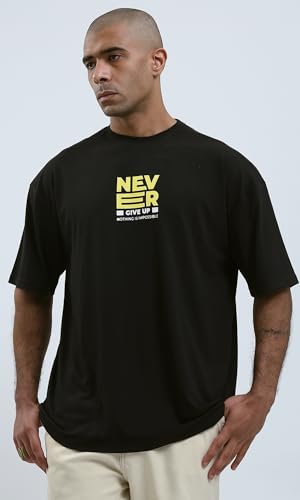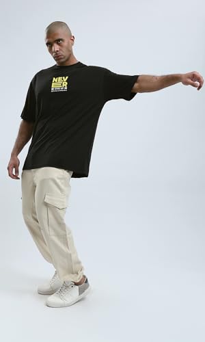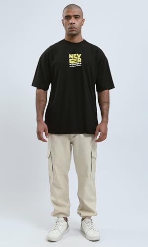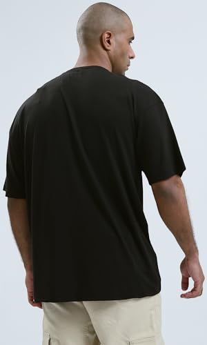 Ravin - Ravin Black Elbow-Sleeves Printed Cotton Tee, Mens, L