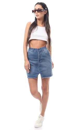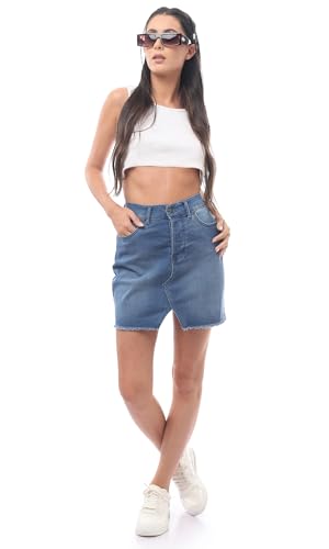 Ravin - Ravin Buttoned Blue Comfy Jeans Shorts, For Women, BLUE, L