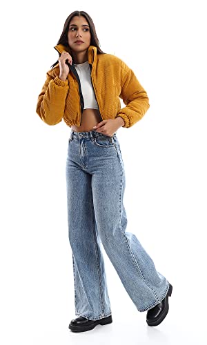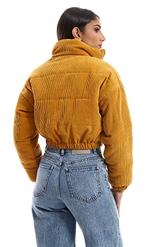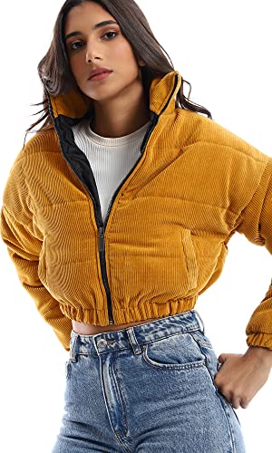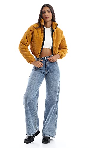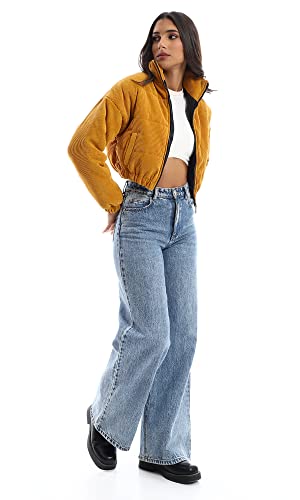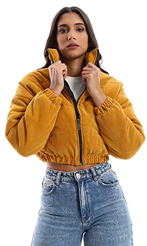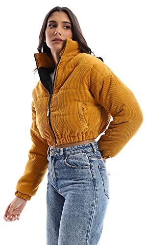 generic - جاكيت قصير مبطن برقبة وسوستة من قماش مضلع منسوج ريفين للنساء W21W364 من ريفين اي جي، برتقالي، مقاس L
