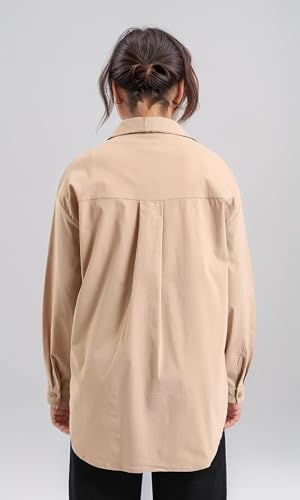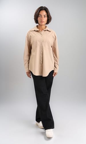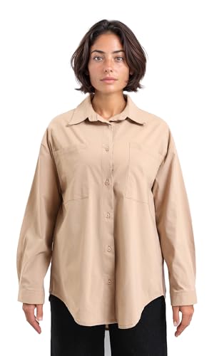 Dsisskai - قميص سادة باكمام طويلة وجيوب امامية للنساء من ريفين - بيج غامق، مقاس S