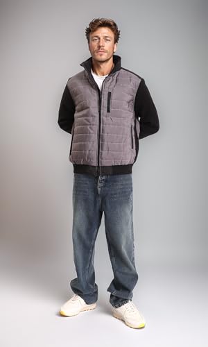 Ravin - Ravin Mens Bi-Tone Long Sleeves Zipped Bomber Jacket - Dark Grey & Black - R211594 Jacket