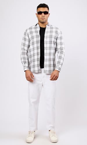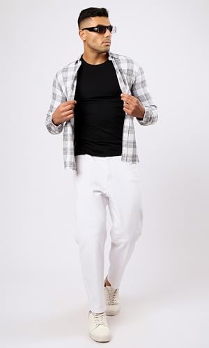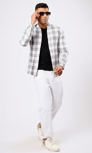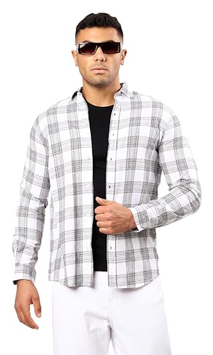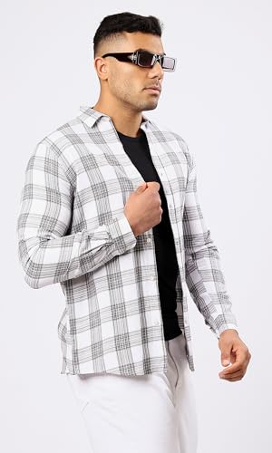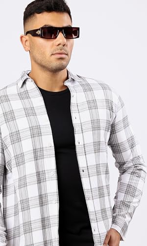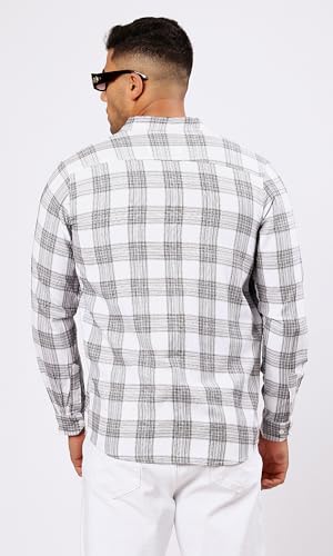 Ravin - Ravin Mens Cotton Grey & White Tartan Summer Shirt Modern