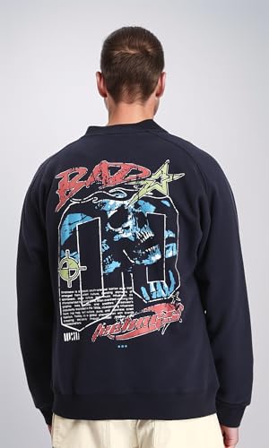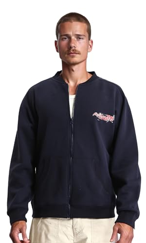 Ravin - Ravin Mens Cotton Printed Zipped Sweatshirt - Navy Blue - R213041 Sweater