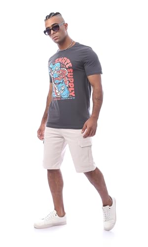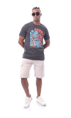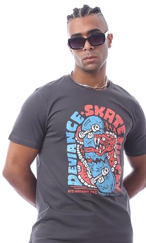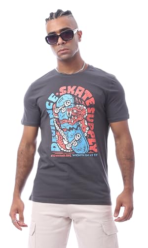 Ravin - Ravin Mens Dark GreyPrinted Summer Slip On Comfy Tee Modern