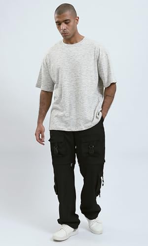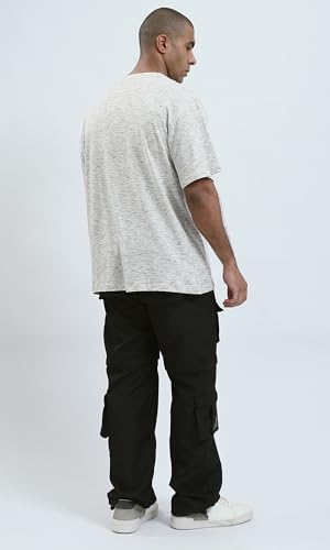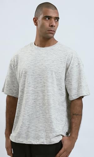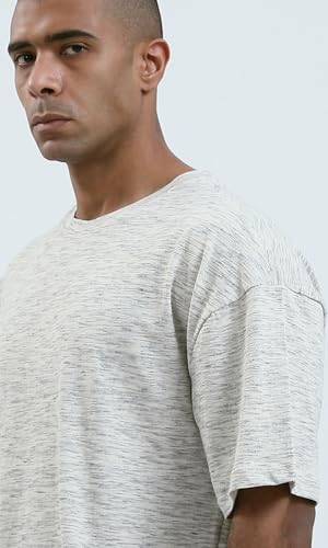Ravin - تيشرت بلون اوف وايت مرقش وقصة مريحة وأكمام للكوع للرجال من ريفين