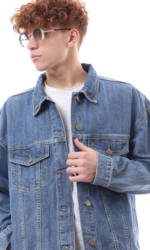 Ravin - Ravin Mens Light Vintage Denim Jacket with Turn Down Collar Modern