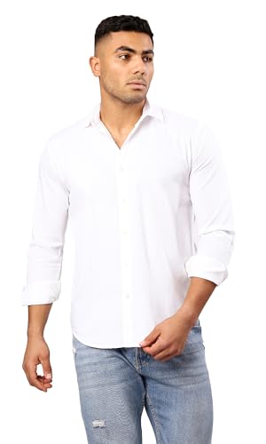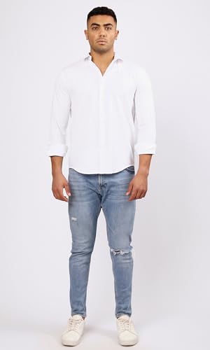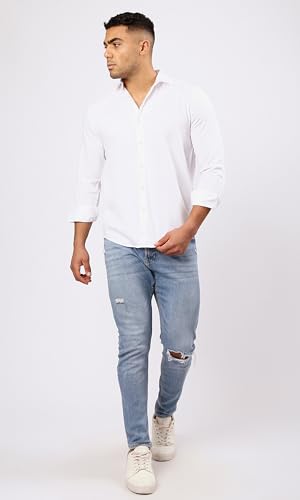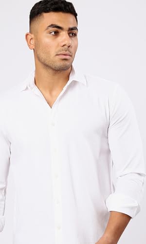 Ravin - Ravin Mens Long Sleeves Patterned White Casual Shirt Modern