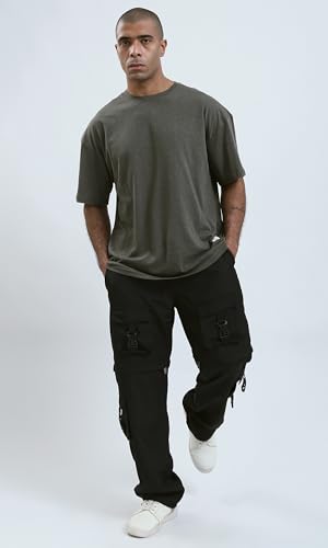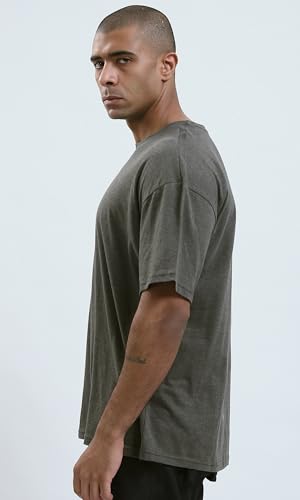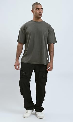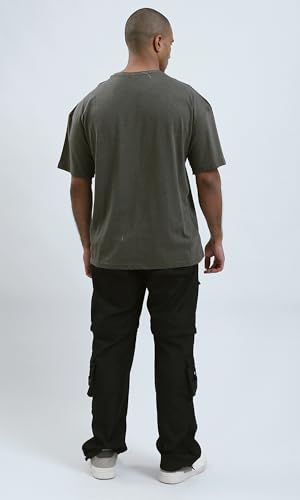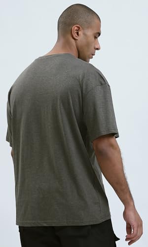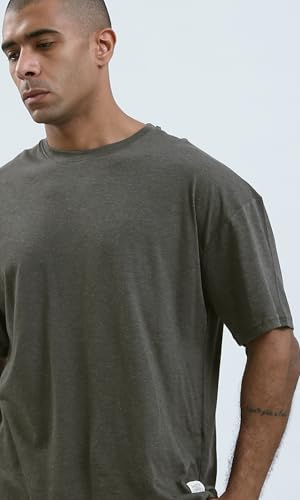 Ravin - ريفين تي شيرت عصري سهل الارتداء برقبة دائرية للرجال بلون كاكي غامق مرقش