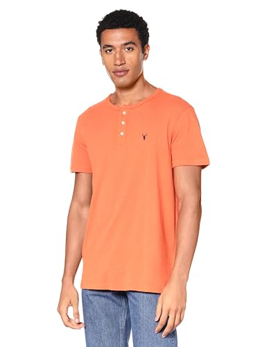 Ravin - تيشرت هينلي عصري بأكمام قصيرة وأزرار للرجال من ريفين، لون برتقالي